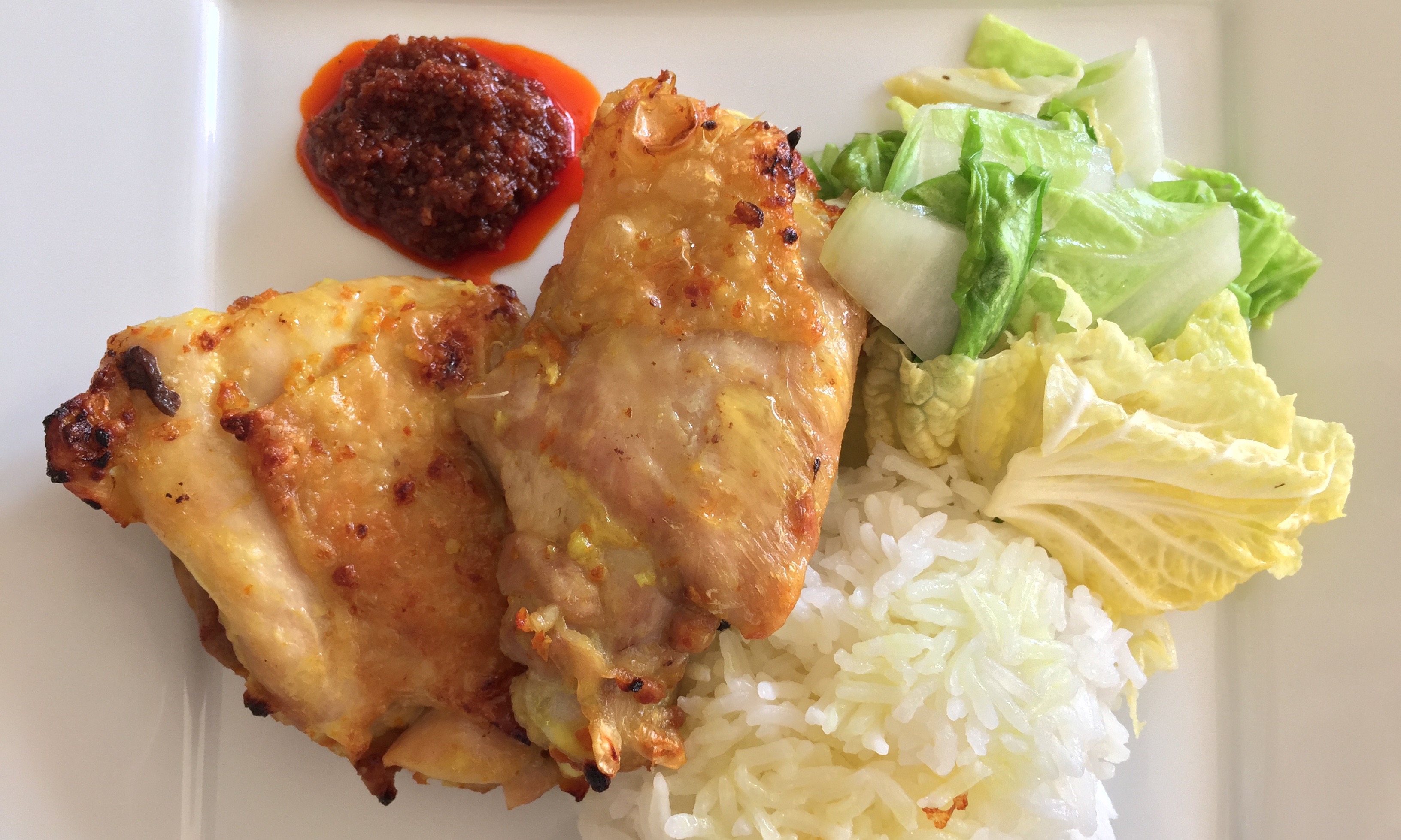 There was chicken thighs in my fridge and now I have this, I wanted to make chicken Malay style just so I can eat it with the sambal. Ayam kunyit–Chicken Turmeric–came to mind. This is a popular dish but it is usually deep fried. I broiled instead.