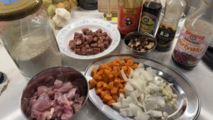 Our aunt told me you had to soak the rice overnight after you pick out stones that might be in the rice. Biting into stone was a common occurrence for many of our co-workers who chipped their teeth just eating rice. Needless to say, that deterred me for years and it wasn’t until I came back into the modern world of microwaving that I ventured to cook this dish.