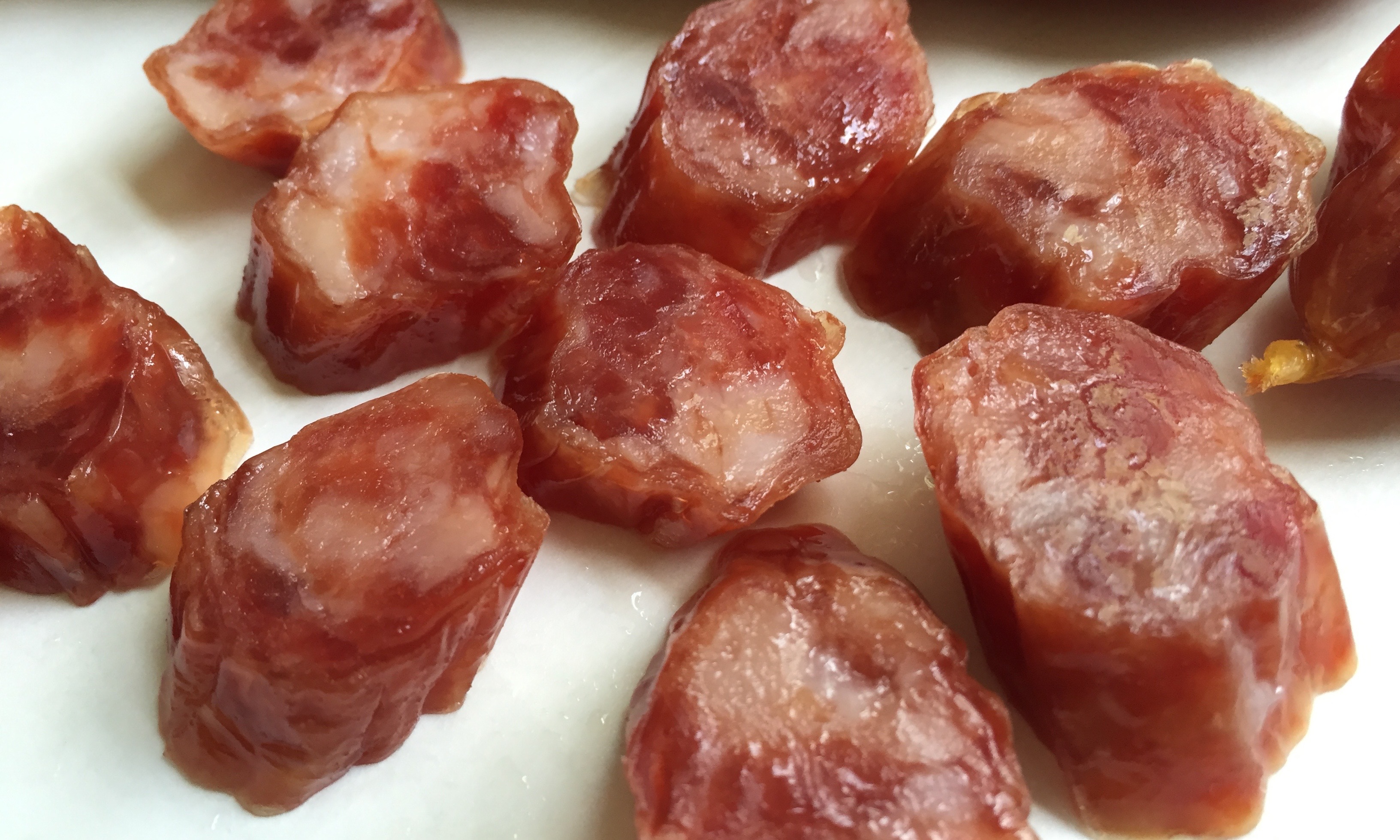 This particular Chinese sausage is Cantonese lap cheung, which is one of the most popular cured meats. This one is made of pork, but there are also liver sausages.