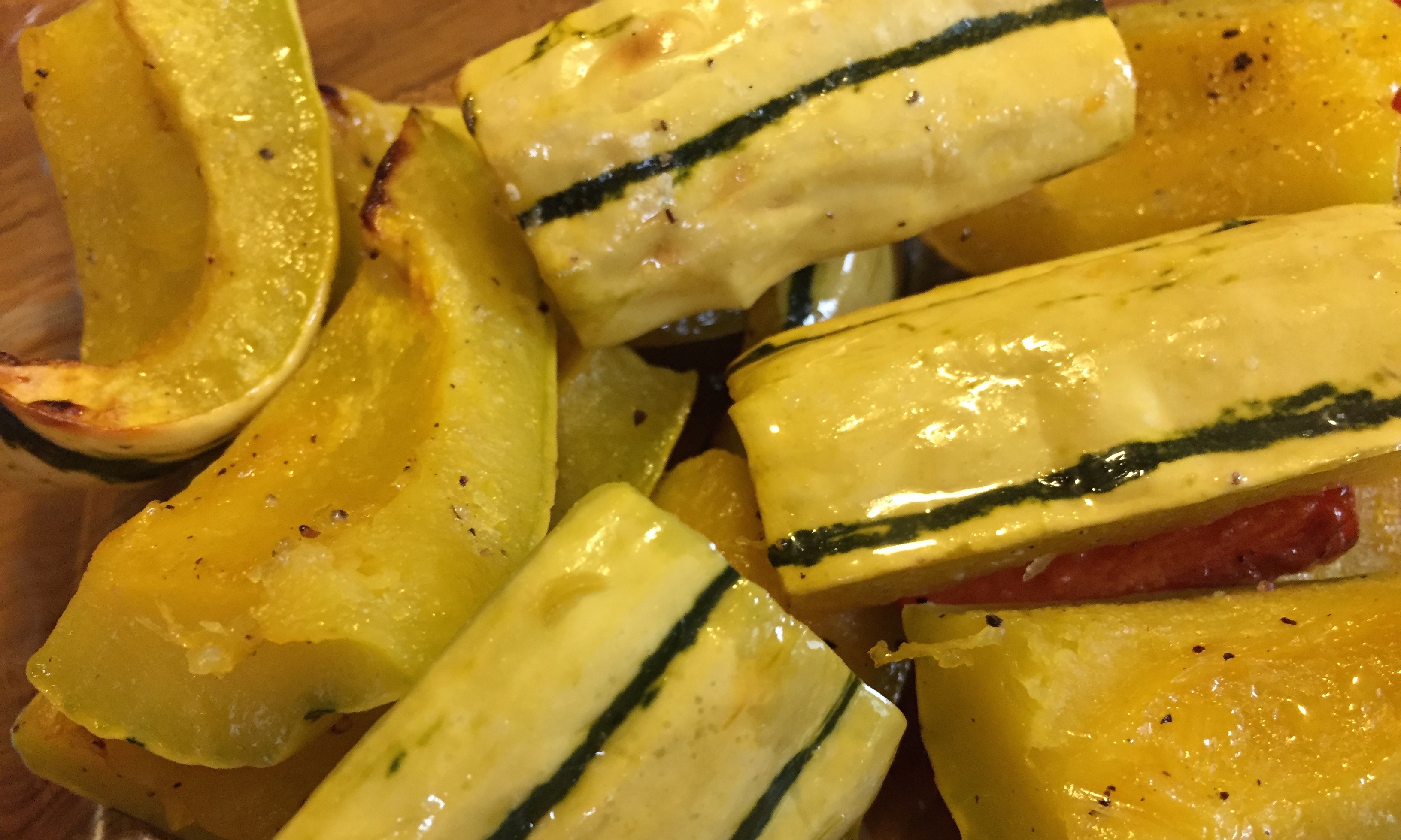 The label on the squash just said wash and cut. Peel stays on. Easy peasy. Except…this is a tough nut to crack. No wonder bugs don’t get to it. Bugs don’t have chisels.