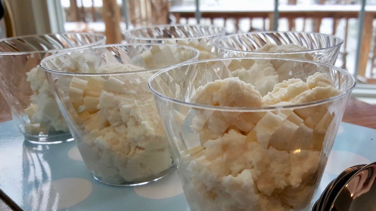 Snow Cream is made from snow. From the sky. My daughter’s in-laws introduced this to me. Nothing more au naturale than this.