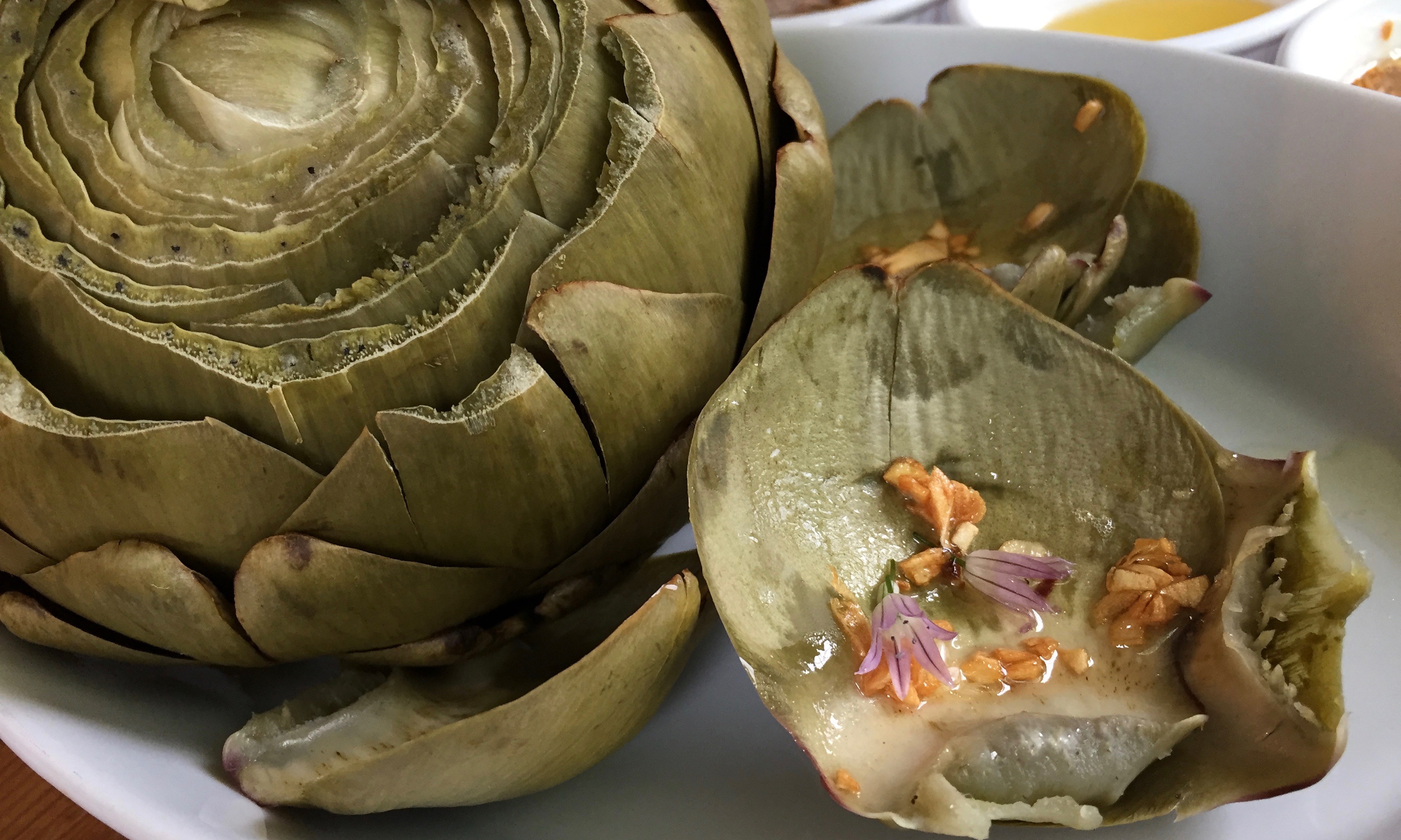 If you’ve never served whole artichoke, do try it. It’s not difficult to prepare this for a small group of friends. You can steam two and serve them with several dishes of fried garlic and melted butters of different types. It will make a great conversation piece and delicious starter.