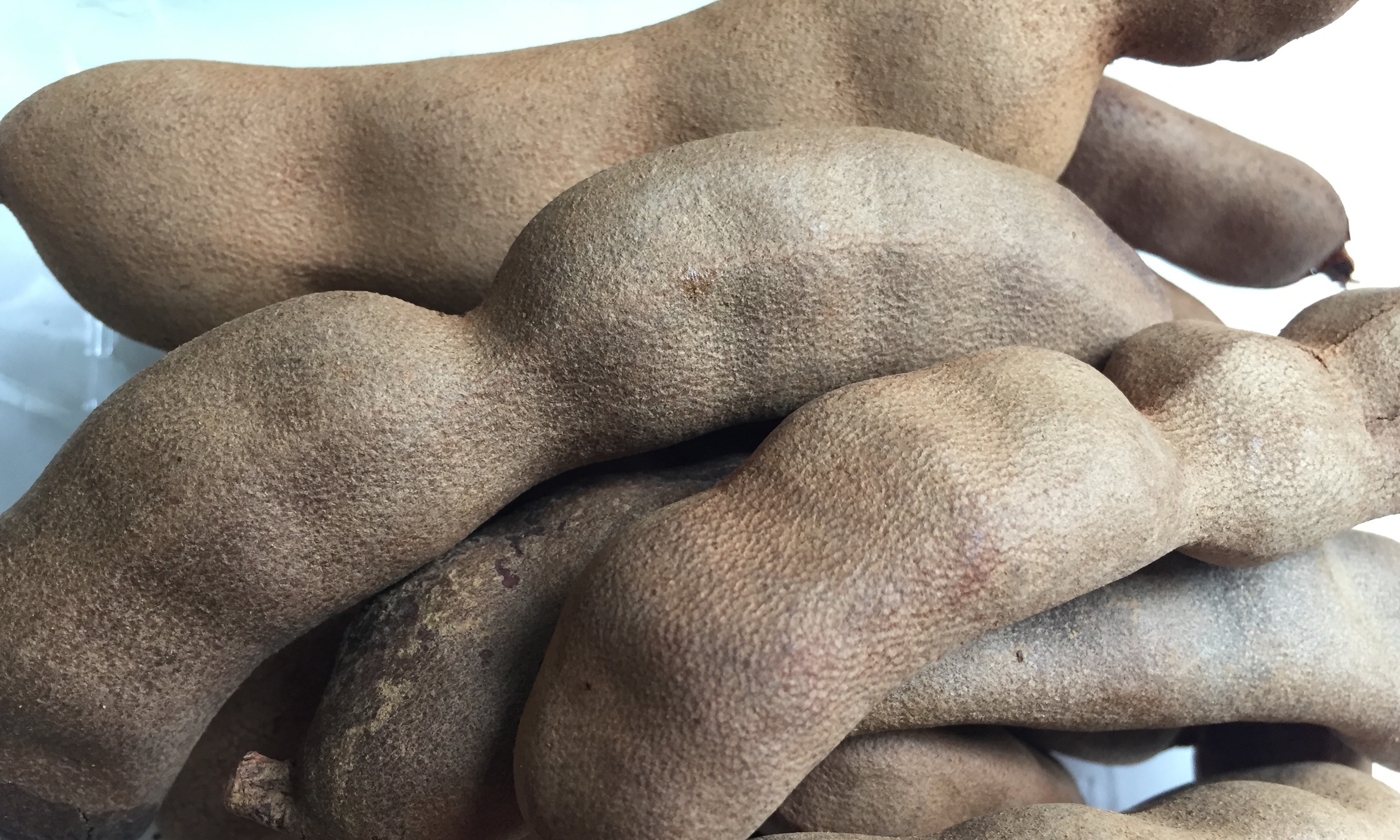 Tamarind used in cooking comes from the flesh of the tamarind pod, shown above. Unlike fresh tamarind, which can be quite sweet–the one above wasn’t–the ingredient tamarind or assam is sour. When cooked with other ingredients it adds a sour but rounded flavor.